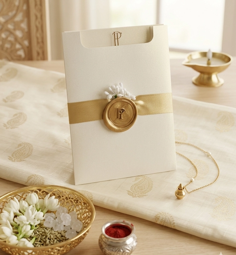 Easy Invitation Madhubani Indian Wedding Card, Multicolor, EIWC0009