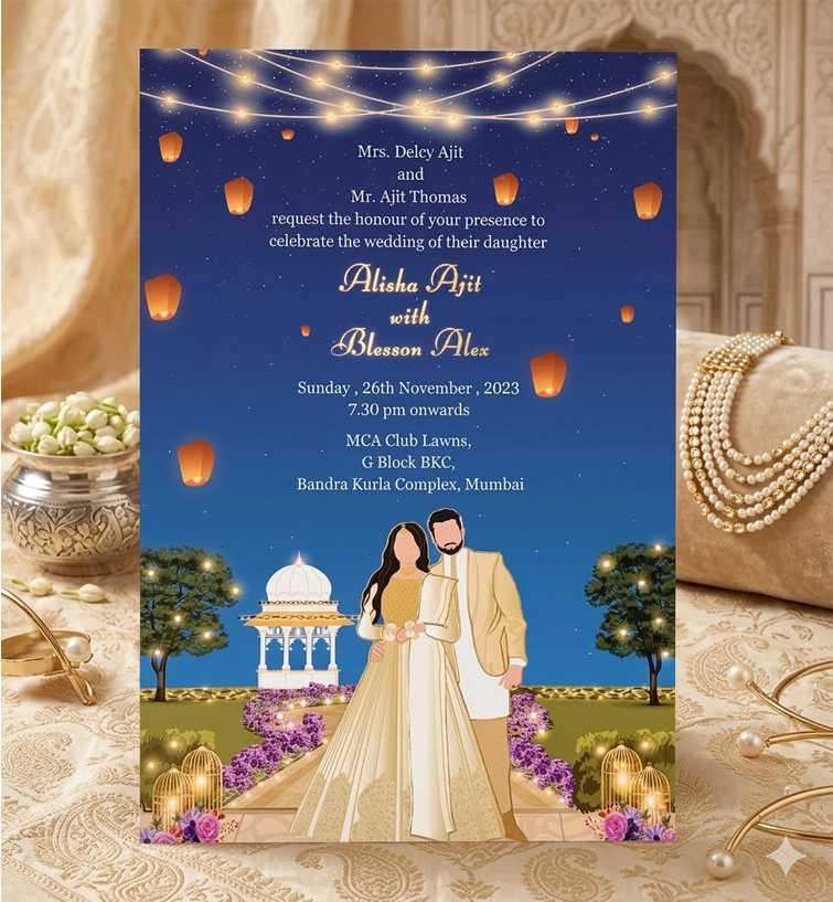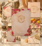 The Charm of Bougainvilleas. High-quality 300 GSM cards for a modern Indian wedding. Includes free WhatsApp invite and expert proofreading.