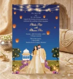 Easy Invitation Lotus Card, Indian Wedding Card, Blue & Pink, EIWC0002