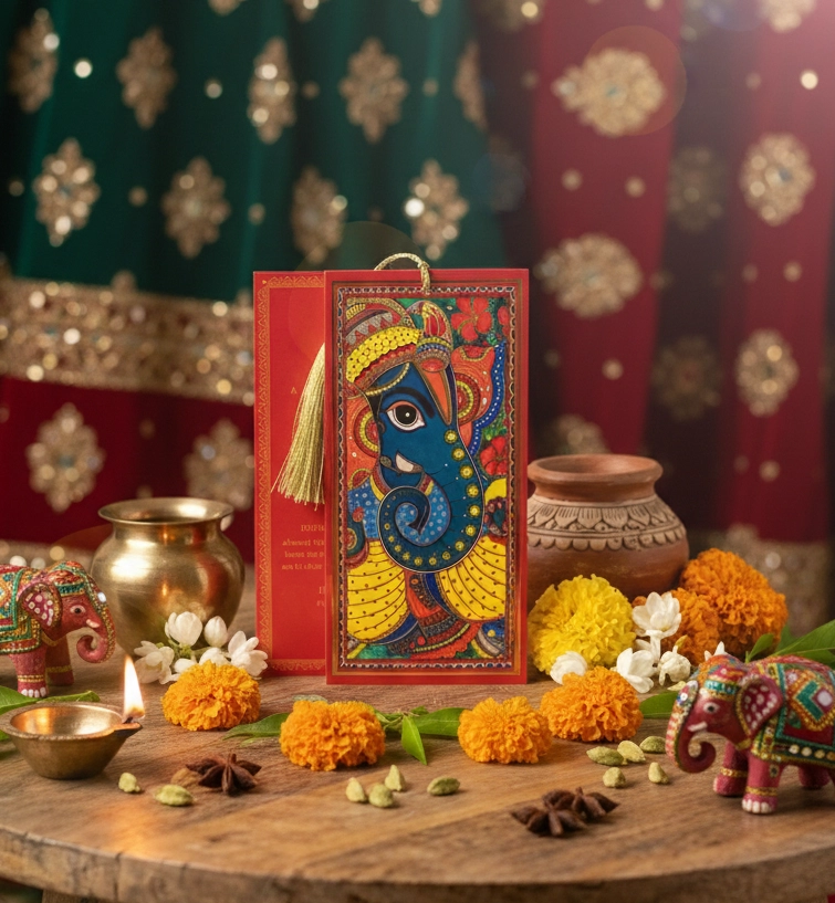 Easy Invitation Ganesh Card, Indian Wedding Card, Red, EIWC0001