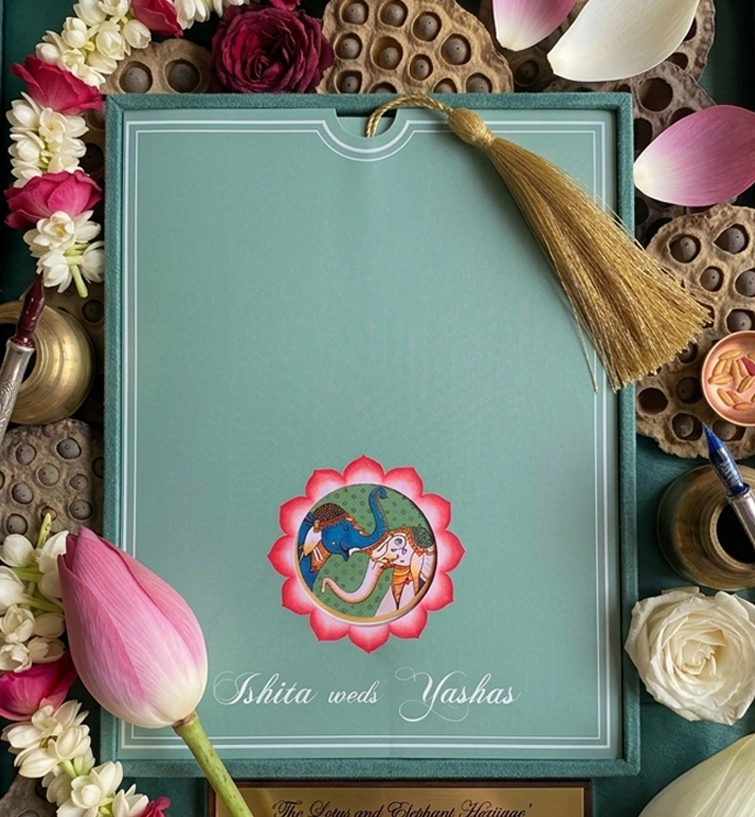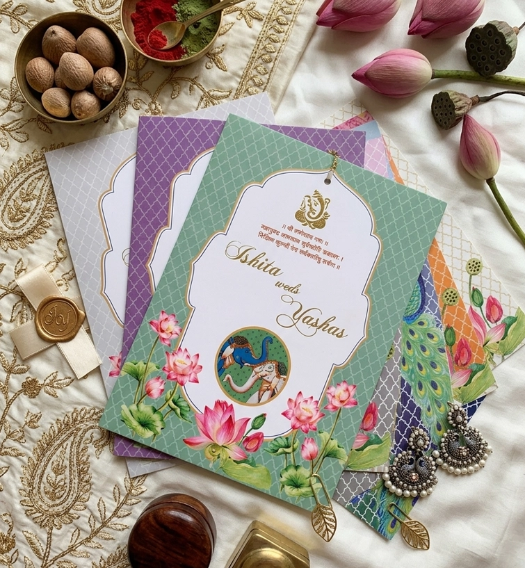 Easy Invitation Lotus Theme Wedding Card, EI_WC100012