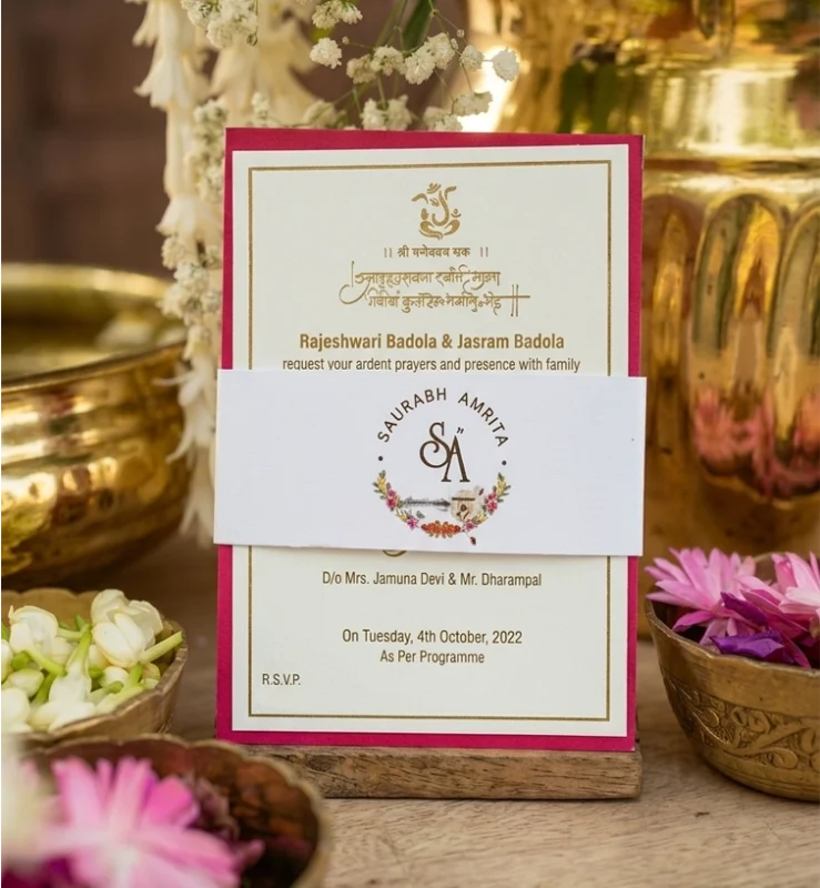 Easy Invitation Indian Classic Wedding Card, Red & Cream, EIWC0003
